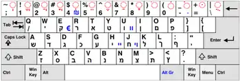 جميع لوحات المفاتيح في إسرائيل مزودة بأحرف لاتينية وعبرية. كما توجد طبعات ثلاثية اللغات تتضمن إما العربية أو السيريلية.يتم تمديد بعض تخطيطات العبرية مع رموز نقية (نقاط حرف علة) ، [33] التي تتطلب Alt + Shift أو تركيبة مفاتيح مماثلة من أجل كتابتها.
