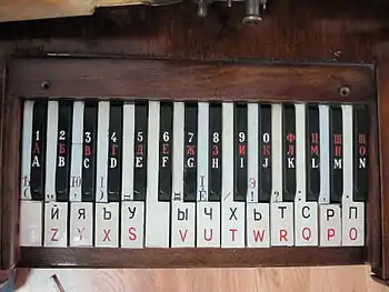 يستخدم تخطيط لوحة المفاتيح الصوتية الروسية على نطاق واسع خارج روسيا، حيث عادة لا توجد حروف روسية مرسومة على أزرار لوحة المفاتيح. تم تصميم هذا التنسيق للطباعين الذين هم أكثر دراية بالتخطيطات الأخرى، مثل لوحة مفاتيح QWERTY الإنجليزية الشائعة، ويتبع المخططات اليونانية والأرمينية في وضع معظم الحروف في مواقع الحروف اللاتينية المقابلة. وهي مشهورة بين كل من الناطقين الأصليين والأشخاص الذين يستخدمون أو يتعلمون أو يتعلمون الروسية .[32]