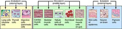 الأديم الباطن هو الطبقة الداخلية من الجنين التي تنتج أعضاء الجهاز الهضمي والجهاز التنفسي عن طريق تشكيل البطانات الظهارية والأعضاء مثل الكبد والرئتين والبنكرياس،[6] وتشكل طبقة الأديم المتوسط أو الطبقة الجرثومية المتوسطة للجنين الدم، والقلب، والكلى، والعضلات، والأنسجة الضامة،[6] بينما تشكل طبقة الأديم الظاهر أو الطبقة الخارجية من الجنين النامي البشرة، والدماغ، والجهاز العصبي.[6]