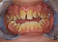 |CitationClass=تم تجاهله (مساعدة) - Kida M, Ariga T, Shirakawa T, Oguchi H, Sakiyama Y (November 2002). "Autosomal-dominant hypoplastic form of amelogenesis imperfecta caused by an enamelin gene mutation at the exon-intron boundary". Journal of Dental Research. 81 (11): 738–42. doi:10.1177/154405910208101103. PMID 12407086. الوسيط