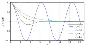 تصرّف النظام الميكانيكي بالإحالة إلى الاِهتزاز هو تابع لوضع التعبير تحت رمز الجذر، أي إن كان موجب أو سالب أو يساوي صفر. فعندما يكون تكون حقيقية وتوفــّـر حل واحد للمعادلة التفاضلية فقط ، ويتصف النظام بتخميد حرج الذي ينبغي أن يـُـسمـّـى . من أجل ذلك تأتي المساواة