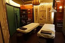 يعد التدليك في الصين علاجًا شائعًا للغاية، حيث تستضيف مدينة شنغهاي وحدها أكثر من 1500 مركز تدليك للقدم بينما يوجد أكثر من 3000 في Shenzhen. إنها واحدة من أكبر الصناعات الخدمية في الصين حيث يبلغ عدد العمال في شنغهاي عشرات الآلاف. [18] يبلغ متوسط أجر العامل في صناعة التدليك في الصين أكثر من 10000 يوان شهريًا، مما يجعلها من بين الوظائف ذات الأجور الأعلى في قطاع الخدمات في الصين. [19] كثيرا ما ترتبط صالات التدليك في الصين بصناعة الجنس، وقد اتخذت الحكومة عددا من الإجراءات في الآونة الأخيرة للحد من الدعارة وانتشار الأمراض. في حملة على الصعيد الوطني تُعرف باسم المسح الأصفر (يشير "الأصفر" بلغة الماندرين الصينية إلى الأنشطة الجنسية أو المحتوى الإباحي)، تم وضع قيود على تصميم وتشغيل صالات التدليك، إلى حد طلب تحديد هوية العملاء الذين يزورون مؤسسات التدليك في وقت متأخر من الليل وتسجيل زياراتهم مع الشرطة المحلية. [20] [21]