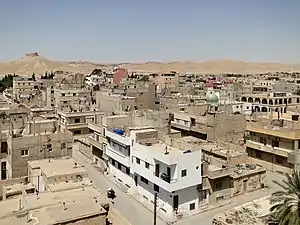تدمر هي مدينة سورية في وسط البلاد تتبع إداريا لمحافظة حمص. وتقع بواحة وسط بادية الشام على بعد 215 كيلومتر من الشمال الشرقي لدمشق[2] و180 كيلومتر من الجنوب الغربي لنهر الفرات. تقع أطلال مدينة تدمر الأثرية التي تعد من بين مواقع الثرات العالمي لليونسكو جنوب غرب مركز المدينة الحديثة على بعد حوالي 500 متر.[3] تعتبر المدينة معزولة نسبيا وتحيط بها كل من قرية الآراك الواقعة في الشرق ومدينة السخنة أبعد قليلا في الشمال الشرقي وقرية الصفا في الغرب والقريتين في الجنوب الغربي.