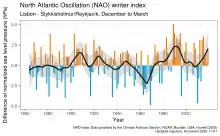 |CitationClass=تم تجاهله (مساعدة) - "North Atlantic Oscillation (NAO)". NOAA. مؤرشف من الأصل في 20 أكتوبر 2014. اطلع عليه بتاريخ 03 أبريل 2014. الوسيط