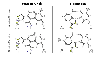 |CitationClass=تم تجاهله (مساعدة) - Hoogsteen K (1963). "The crystal and molecular structure of a hydrogen-bonded complex between 1-methylthymine and 9-methyladenine". Acta Crystallographica. 16: 907–916. doi:10.1107/S0365110X63002437. الوسيط