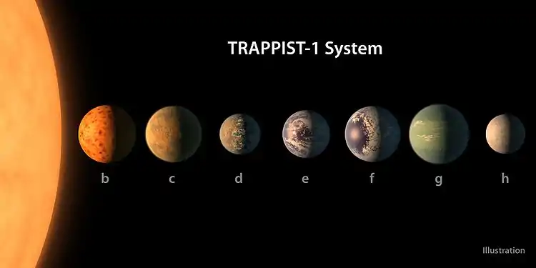 |CitationClass=تم تجاهله (مساعدة) - "NASA telescope reveals largest batch of Earth-size, habitable-zone planets around single star". Exoplanet Exploration: Planets Beyond our Solar System. ناسا. مؤرشف من الأصل في 27 مارس 2019. اطلع عليه بتاريخ 22 فبراير 2017. الوسيط