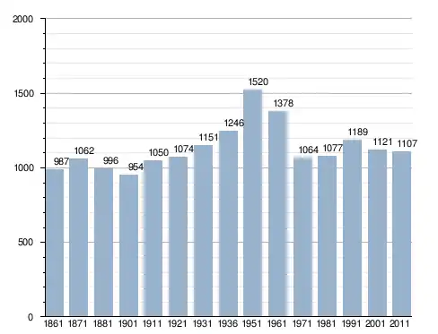 في سنة 1861 بلغ عدد السكان 987 نسمة، وتطور العدد ليصل في سنة 2011 لـ 1٬107 نسمة.