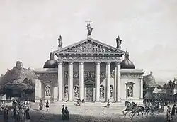 في منتصف القرن الثامن عشر، ألهمت العمارة الرومانية العمارة الكلاسيكية الجديدة. وكانت الكلاسيكية الجديدة حركة دولية. وعلى الرغم من أن العمارة الكلاسيكية الجديدة توظف نفس المفردات الكلاسيكية مثل الهندسة المعمارية الباروكية المتأخرة، فإنها تميل إلى التأكيد على صفاتها المستوية، بدلاً من الأحجام النحتية، كما تكون الإسقاطات والركود وآثارها من الضوء والظل هي أكثر اتساقا، وتميل النقوش النحتية إلى أن تكون محفوفة بالأفاريز أو الألواح.