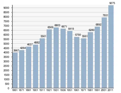 في سنة 1861 بلغ عدد السكان 3٬967 نسمة، وتطور العدد ليصل في سنة 2011 لـ 9٬275 نسمة.