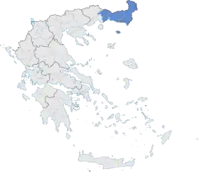 وتنقسم تراقيا إلى الوحدات الإقليمية الثلاثة (المحافظات سابقا): كسانثي، روذوبي وإفروس، والتي تكون جنبا إلى جنب مع الوحدات الإقليمية المقدونية ذراما، وكافالا و ثاسوس منطقة مقدونيا الشرقية وتراقيا.[4]