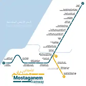 |CitationClass=تم تجاهله (مساعدة) - SLIMANI, KARIMA. "Mostaganem : mise en exploitation commerciale en mars 2021 du tramway". www.aps.dz (باللغة الفرنسية). مؤرشف من الأصل في 29 يوليو 2020. اطلع عليه بتاريخ 01 يناير 2021. الوسيط