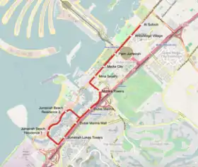 | نقطة البداية | أبراج شاطئ جميرة 1 |