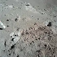 كشفت رحلات أبولو الفضائية القمرية في القرن العشرين التي حطّت على سطح القمر بين سنة 1969م و1972م كميات كبيرة نسبيا من تربة القمر بلغت نحو 400 كيلو جرام من صخوره وأحجاره وهي ذات لون رمادي غامق إلى رمادي بني وقد دخلت مختبرات التحليل العلمي وعرض بعضها في المعارض والمناسبات .