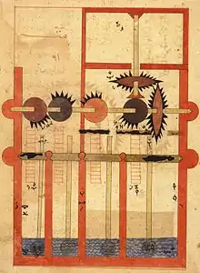 كانت الحبال ومواد أخرى مصنوعة من الأخشاب تستخدم قديمًا في آليات بسيطة لنقل الحركة مثل البكَّرات الرافعة، لكن لا أحد يعرف على وجه الدقة أين أو متى بدأ استخدام العجلات، ومع أن الأدب الصيني القديم والأدب اليوناني والتركي والدمشقي قد أشاروا كثيرًا إلى التروس إلا أنهم لا يقدمون الكثير من التفاصيل.