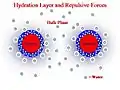 تتشكل الشحنات الكهروستاتيكية عندما يتعلق البروتين بحل كهرلي. هذه الشحنات المتنافرة بين البروتينات تمنع التجمع وتسهل الذوبان. الايون المذيب يهاجر نحو البقايا الموجودة على سطح البروتين مشكلا مصفوفة جامدة لهذا الايون تعلق على سطح البروتين.فطبقة الإذابة المجاورة والتي تكون اقل جمودا تتألف من لمحة متناقصة لتركيزهذا الايون بمقابل زيادة لتركيز الايونات المشتركة.في الواقع ان احتمالة دخول البروتين في التفاعلات الايونية بعضها البعض ستنخفض.والبروتينات اقل عرضة عرضة لتتشكل ضمن مجموعات فجزيئات الماء لها اثر مماثل حيث ان الماء يشكل طبقة اذابة حول رواسب السطح المائي للبروتين والماء يوجد الانحدار نحو تركيز البروتين وفقا لأعلى تركيز على سطح البروتين وشبكة المياه هذه لها تأثير التثبيط على قوة التجاذب بين البروتينات.