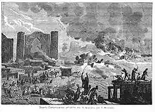 لوحة زيتية تظهر معارك بين سكان الطاجيك وبين القوات الإمبراطورية الروسية في سمرقند عام 1872م