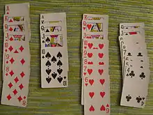 - التركس أو اللعبة الموجبة:وهنا يبدأ اللاعب بوضع ورقة الشاب على الطاولة، ومن ثم يبدأ الآخرون بوضع العشرة ومن ثم التسعة إلخ. من ينهي أوراقه أولًا يحصل على 200 نقطة موجبة ومن ثم 150 للثاني، و100 للثالث، و50 للرابع.