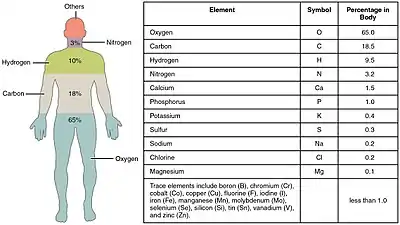 |CitationClass=تم تجاهله (مساعدة) - "Elemental Composition of the Human Body" by Ed Uthman, MD Retrieved 17 June 2016 نسخة محفوظة 18 ديسمبر 2018 على موقع واي باك مشين.