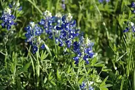 نبات ثنائي الحول أوراقه مركبة كفية، تضم كل واحدة منها ما بين سبع وتسع وريقات. الأزهار زرقاء نبنفسجية وطرفها أبيض.
