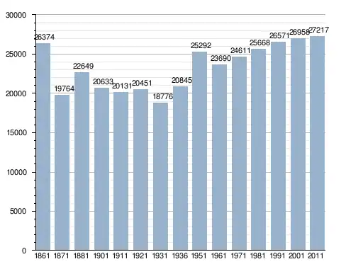 في سنة 1861 بلغ عدد السكان 26٬374 نسمة، وتطور العدد ليصل في سنة 2011 لـ 27٬217 نسمة.