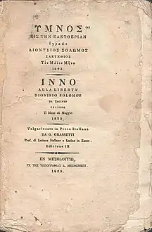 ترنيمة إلى الحرية (باليونانية: Ὕμνος εἰς τὴν Ἐλευθερίαν) هي قصيدة كتبها ديونيسيوس سولومو في عام 1823 ومكونة من 158 موشحات، وهو نشيد اليونان الوطني.[1][2][3] وتم اعتماده في عام 1865 و بعدها بحوالي مائة عام تم اعتماده من دولة قبرص كنشيد وطني لها أيضا في عام 1966.