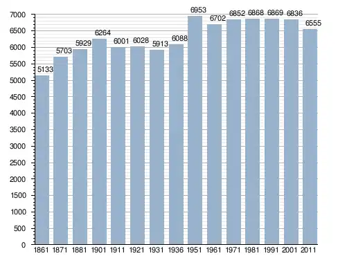 في سنة 1861 بلغ عدد السكان 5٬133 نسمة، وتطور العدد ليصل في سنة 2011 لـ 6٬555 نسمة.