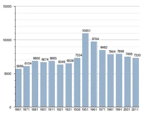 في سنة 1861 بلغ عدد السكان 5٬686 نسمة، وتطور العدد ليصل في سنة 2011 لـ 7٬330 نسمة.