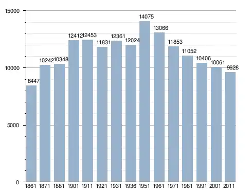 في سنة 1861 بلغ عدد السكان 8٬447 نسمة، وتطور العدد ليصل في سنة 2011 لـ 9٬628 نسمة.