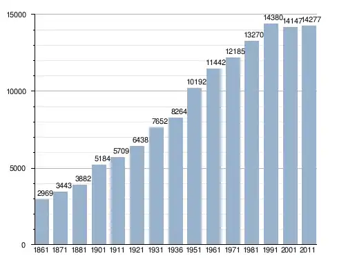 في سنة 1861 بلغ عدد السكان 2٬969 نسمة، وتطور العدد ليصل في سنة 2011 لـ 14٬277 نسمة.