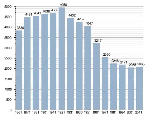 في سنة 1861 بلغ عدد السكان 3٬830 نسمة، وتطور العدد ليصل في سنة 2011 لـ 2٬085 نسمة.