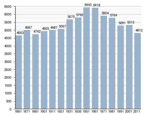 في سنة 1861 بلغ عدد السكان 4٬663 نسمة، وتطور العدد ليصل في سنة 2011 لـ 4٬812 نسمة.
