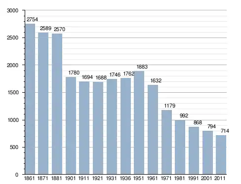 في سنة 1861 بلغ عدد السكان 2٬754 نسمة، وتطور العدد ليصل في سنة 2011 لـ 714 نسمة.