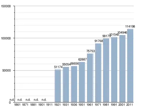 في سنة 1871 بلغ عدد السكان نسمة، وتطور العدد ليصل في سنة 2011 لـ 114٬198 نسمة.
