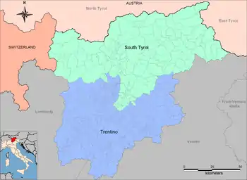 | (بالإيطالية: Regione Autonoma Trentino-Alto Adige) (بالألمانية: Autonome Region Trentino-Südtirol) | ||