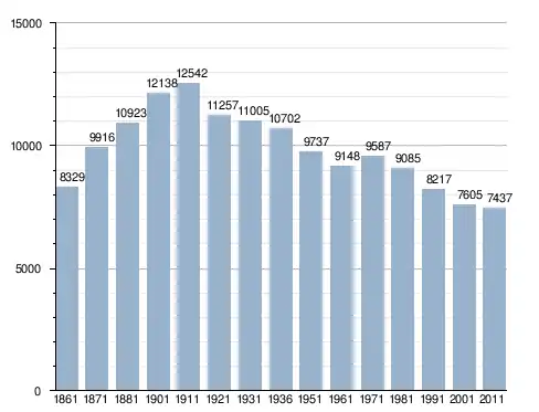 في سنة 1861 بلغ عدد السكان 8٬329 نسمة، وتطور العدد ليصل في سنة 2011 لـ 7٬437 نسمة.