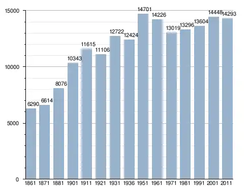 في سنة 1861 بلغ عدد السكان 6٬290 نسمة، وتطور العدد ليصل في سنة 2011 لـ 14٬293 نسمة.