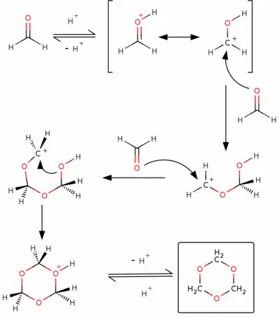 يحضر 5,3,1-تريوكسان من تفاعل تحلّق الميثانال (الفورمالدهيد) بوجود حفاز حمضي:
