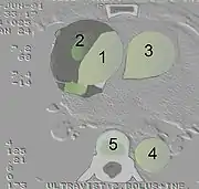 | تسلخ الأبهر لحالة تنتمي للمجموعة A في تصنيف Stanford 1 الأبهر الصاعد، التجويف الشرياني الأصلي - 2 التجويف الشرياني الكاذب - 3 الشريان الرئوي 4 الأبهر الهابط - 5 فقرة صدرية | |