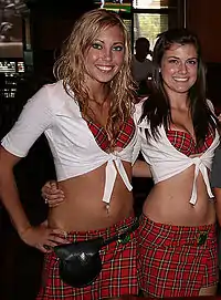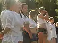 نساء مشاركات في مسابقة الوِت تي شيرت [الإنجليزية] (القميص المبلول)، هي مسابقة تنطوي على الاستثارة ، تلبس المتسابقات القمصان البيضاء أو ذات الألوان الفاتحة بدون حمالات الصدر ، أو بلوزات البيكيني. ثم يتم رش الماء (غالبًا الماء المثلج) أو سكبه على صدور المشاركات ، مما يتسبب في تحول قمصانهم لشفافة وتتشبث بثديهم
