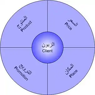 (المنتج Product، والسعر Price، والترويج Promotion، التوزيع أو المكان Place)