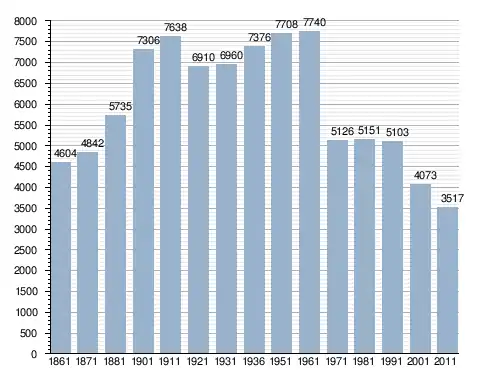 في سنة 1861 بلغ عدد السكان 4٬604 نسمة، وتطور العدد ليصل في سنة 2011 لـ 3٬517 نسمة.
