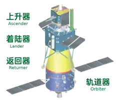 ...the lunar probe is comprisedof four parts: an orbiter, a returner, an ascender and a lander...