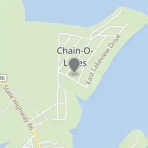 تشاين أف ليكس (بالإنجليزية: Chain-O-Lakes, Missouri) هي معلم جغرافي تقع في الولايات المتحدة في مقاطعة باري، ميزوري.[3] يقدر عدد سكانها بـ 126 نسمة ومساحتها 0.21 كم2 و وترتفع عن سطح البحر 313 متر.