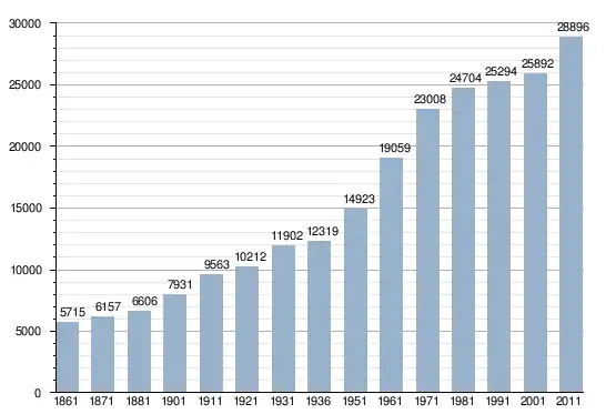 في سنة 1861 بلغ عدد السكان 5٬715 نسمة، وتطور العدد ليصل في سنة 2011 لـ 28٬896 نسمة.