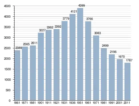 في سنة 1861 بلغ عدد السكان 2٬389 نسمة، وتطور العدد ليصل في سنة 2011 لـ 1٬787 نسمة.