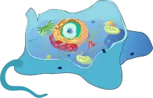 تحتوي المملكة الحيوانية على الكائنات متعددة الخلايا، وهي كائنات غيريّة التغذية وقادرة على الحركة (على الرغم من كون بعضها قد اعتمدت على أسلوب الحياة المتحركة بشكل ثانوي). معظم الحيوانات لديها أجسام تتكون من أنسجة منفصلة. لدى هذه الكائنات حجرة داخلية للهضم، مزوّدة بفتحة أوفتحتين، كذلك يتم إنتاج الأمشاج في الأعضاء التناسلية متعددة الخلايا، وتتضمن البيضة الملقّحة مرحلة الأرومة في التطوّر الجنيني. لا تشتمل المملكة الحيوانية على الإسفنجيات، على الرغم من امتلاكه خلايا عديدة إلا أنها غير متمايزة.[10] على عكس الخلايا النباتية، لا تمتلك الخلايا الحيوانية جداراً خلويّاً، وكذلك لا تشتمل على صانعات خضراء. كذلك فإن الفجوات العصارية في حال وجودها، تكون في الخلية الحيوانية أكثر عدداً وأصغر حجماً من نظيرتها الموجودة في الخلايا النباتية. تتكون أنسجة الجسم من أنماط عديدة من الخلايا، بما في ذلك تلك الموجودة في الجلد، والعضلات، والأعصاب. كل خلية تمتلك غشاءاً خلوياً يتكوّن من شحميات فوسفورية (فوسفوليبيدات)، وتمتلك أيضاً سيتوبلاسما (هيولى خلوية) ونواة. تُشتق كل الخلايا في الحيوان من الطبقات الإنتاشية الجنينية. تُدعى اللافقاريات الأبسط التي تتشكّل من طبقتين إنتاشيتين هما الأديم الظاهر والأديم الباطن بالكائنات مزدوجة الطبقة الإنتاشية، أما الحيوانات الأكثر تقدّماً والتي تتكوّن أعضاؤها وبناها من ثلاث طبقات إنتاشية، فتدعى بـثلاثية الأرومات.[11] تُشتقّ جميع أنسجة وأعضاء الحيوانات ثلاثية الأرومات من الطبقات الإنتاشية الثلاث للجنين، وهي الأديم الظاهر، والأديم المتوسط، والأديم الباطن. تُصنّف الأنسجة الحيوانية في أربع مجموعات رئيسية هي: النسيج الضام، والظهاري، والعضلي، والعصبي.
