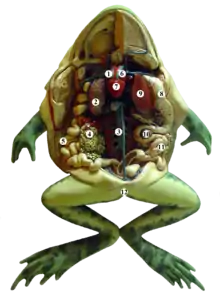 البرمائيات هي طائفة من الحيوانات، تضمّ الضفادع والسلمندر والثعابنية. تصنّف البرمائيات كرباعيات أرجل، باستثناء الثعبانية وعدد قليل من أنواع السلمندر إما عديمة الأطراف، أو أن أطرافهم صغيرة الحجم. عظامهم الرئيسية جوفاء وخفيفة الوزن ومتعظمة تماماً، الفقرات متشابكة مع بعضها وتمتلك نواتئ مفصلية. أما الأضلاع فقصيرة عادةً ويمكن أن تلتحم بالفقرات. جماجمهم واسعة وقصيرة، وغالباً ما تتعظم بشكل غير مكتمل. يحتوي الجلد على القليل من الكيراتين وهو يفتقر إلى الحراشف، ويحتوي الجلد على العديد من الغدد المخاطية، وفي بعض الأنواع، غدد سامة. تحتوي قلوب البرمائيات على ثلاث حجرات، هي أذينين وبطين واحد. تمتلك البرمائيات مثانة بولية وتُطرح الفضلات النيتروجينية في المقام الأول على شكل يوريا. تتنفس البرمائيات عن طريق ضخّ الشدق، وهو عمل مضخة يتم من خلالها سحب الهواء عبر فتحتي الأنف إلى المنطقة الشدقية البلعومية. تُغلق هذه المنطقة فيما بعد ويُجبر الهواء على الدخول إلى الرئتين عبر انقباض الحلق[28] تُستكمل هذه العملية عبر تبادل الغازات من خلال الجلد، ويجب أن يبقى الجلد رطباً.[29]