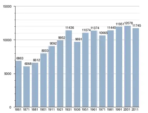 في سنة 1861 بلغ عدد السكان 6٬863 نسمة، وتطور العدد ليصل في سنة 2011 لـ 11٬745 نسمة.