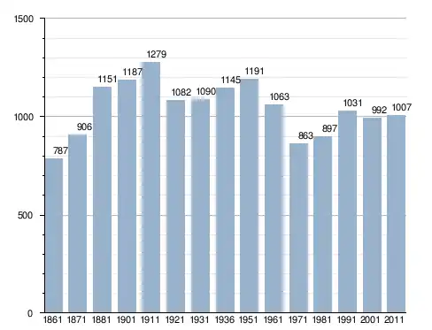 في سنة 1861 بلغ عدد السكان 787 نسمة، وتطور العدد ليصل في سنة 2011 لـ 1٬007 نسمة.