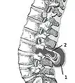 (2) الحبل الشوكي مُقحم بين الفقرات .